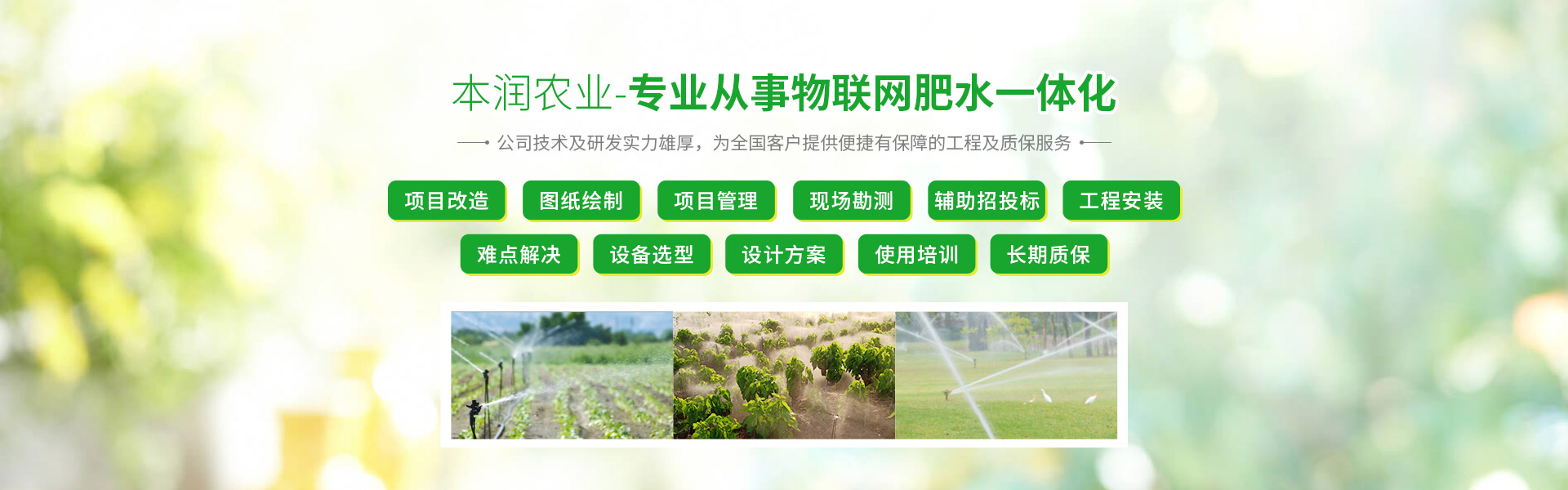 “用心做事,本潤(rùn)農(nóng)業(yè)”追求無(wú)止境,學(xué)習(xí)無(wú)止境,創(chuàng)新無(wú)止境,本潤(rùn)農(nóng)業(yè)將為您打造最專(zhuān)業(yè)最有保障的現(xiàn)代灌溉技術(shù)工程